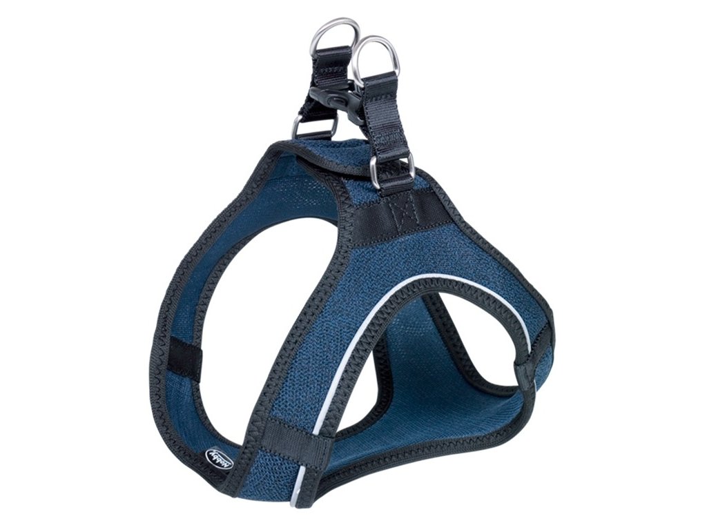 Simple lightweight CAYO chest harness for dogs by Nobby. It is made of plush mesh, which provides optimal wearing comfort. Very comfortable cut and design, does not tear the fur, does not press or rub the dogs. Thanks to the special shape, it is easy and quick to put on. Quick-drying and easy-to-clean material. Material: breathable microfiber Color: blue. Size S. chest circumference: 35 - 38 cm waist circumference: 36 - 38 cmAdditional parameters