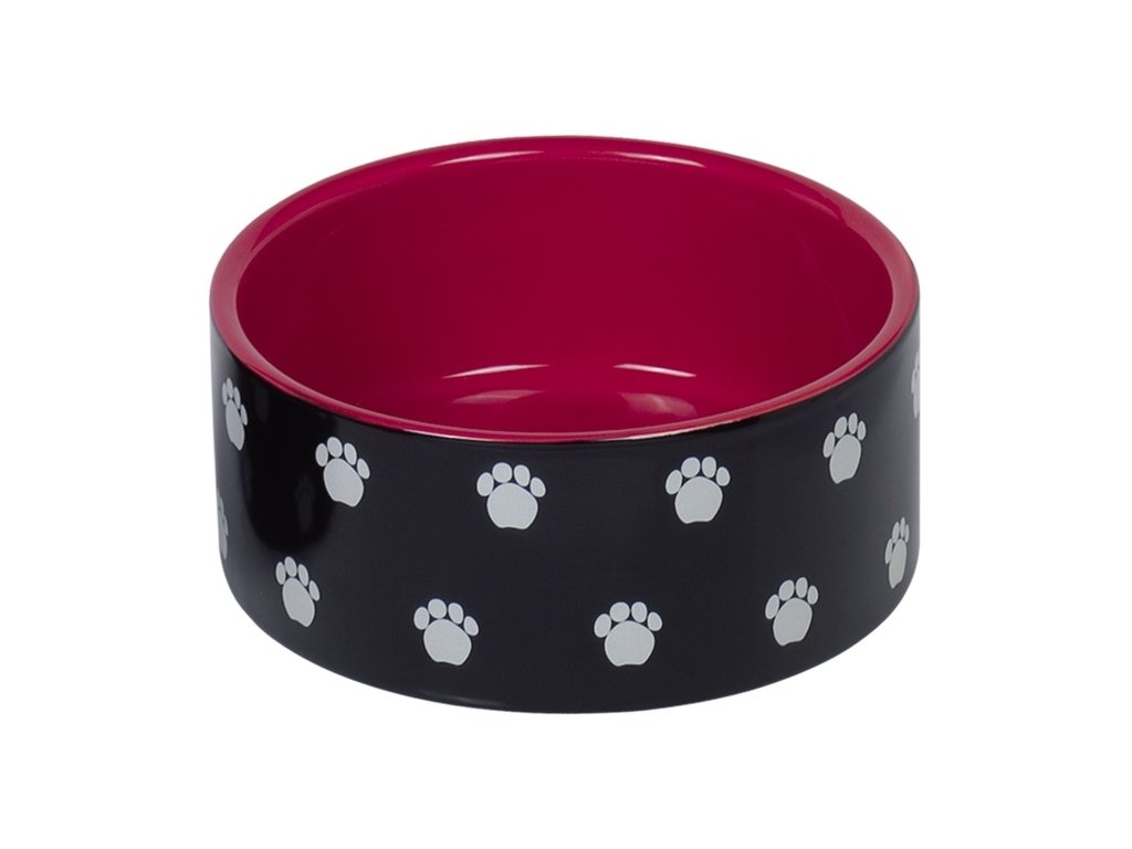 High-quality ceramic bowl Nobby PATA for food or water, dimensions 15.0 x 6.0 cm. The color of the bowl is black-red and shiny. The outside of the bowl is decorated with a motif of dog paws. The bowl has a volume of 0.55 liters. Manufacturer Nobby (Germany) ceramic bowl color black-red shiny motif of dog paws volume 0.55 liters dimensions Ø 15.0 x 6.0 cmAdditional parameters