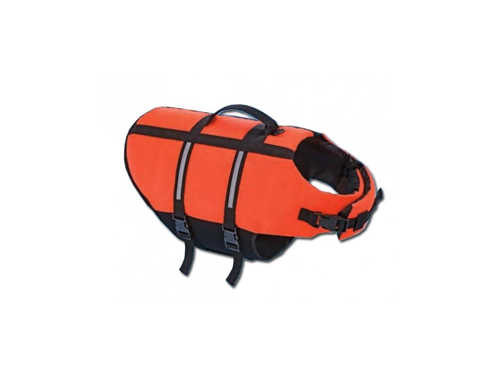 Reflective life jacket for dogs. Quick and easy to adjust. Comfortable to wear thanks to the anatomical shape. Protection when sailing, playing in the water and on boat trips, more safety when playing and training in the water. Nylon straps with fastening. Washable at 30°C. Size XL - 45 cm corresponds to the length of the dog's back (from the neck to the root of the tail). Since the dog's tail greatly helps in changing direction when swimming, the vest should not cover the root of the tail. Chest circumference: 84-94 cm. Color orange. Signal colors and reflective stripes ensure quick location determination. The life jacket helps protect your dog during water sports, jumping into the water, or falling overboard. These vests have a grab handle on the back for easier catching and lifting the dog into the boat and a contrasting two-tone design and reflective stripes for better visibility.Additional parameters