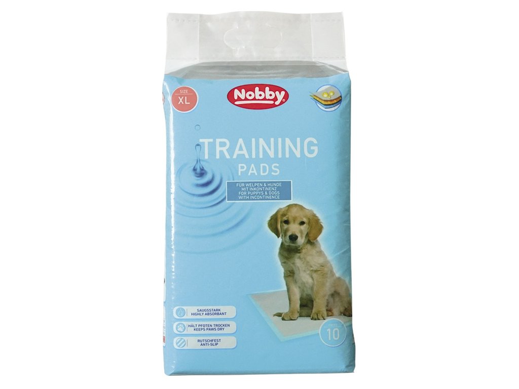 Highly absorbent Nobby pads with natural cellulose are designed to absorb urine. The pads are intended primarily for puppies and their easier training in learning basic hygiene habits, but also for older, sick animals. They are also used, for example, as a cage pad, a top layer for a bed or as a "insurance" in a carrier during a longer trip. There is a waterproof layer on the underside that prevents urine leakage. The package contains 10 pieces. The size of the pad is 90 x 60 cm. Anti-slip underside. The consumption of the pads depends on the number of puppies, their age and breed. For the initial purchase, we recommend considering the consumption of 4 pads per day. The pads replace hygienically unsuitable newspapers or economically disadvantageous rags that must be washed constantly.Additional parameters