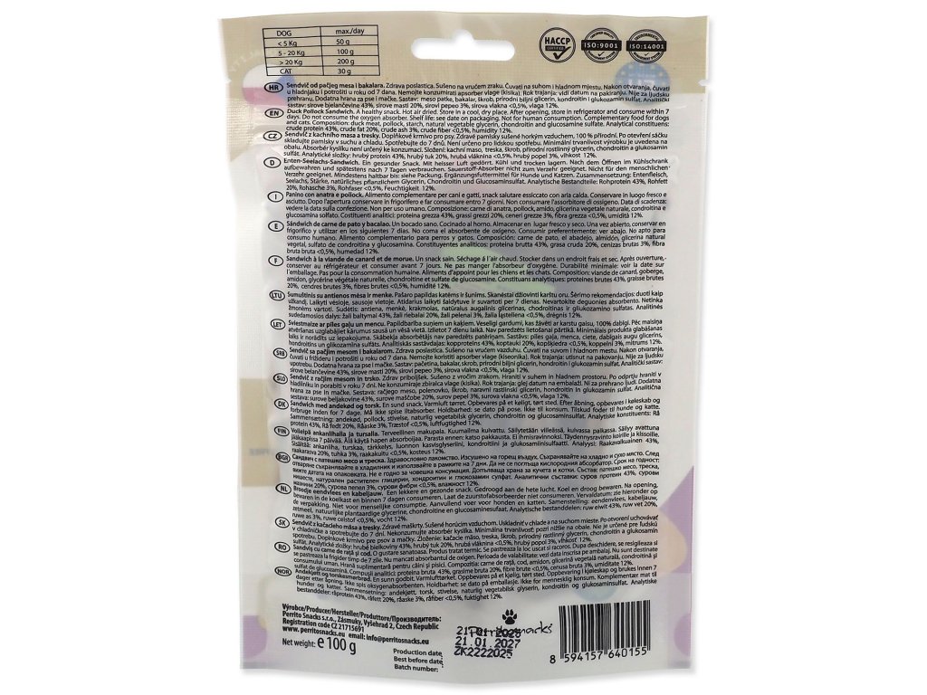 Perrito duck and cod sandwich treat 100g