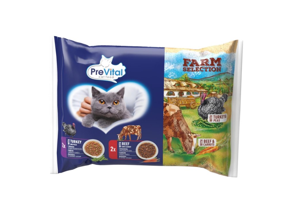 Prevital Farm Selection cat food beef and turkey in sauce with vegetables, bag 85 g (4 pack)