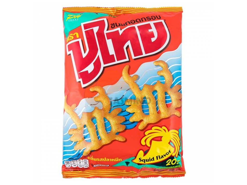 Country of origin Thailand Storage Keep in a dry and cool place away from direct light. Ingredients Wheat flour 52%, icing sugar, palm oil 20%, tapioca starch 16%, spices 11%, iodized salt 1% (contains cuttlefish powder, sugar, chili powder in spices), Natural artificial Flavor Allergens Wheat Nutritional values per 60g Energy 160 kcal Fat 9g of which saturated fatty acids 3.5g Carbohydrates 17g of which sugar 1g Protein 5g Salt 320mgAdditional parameters