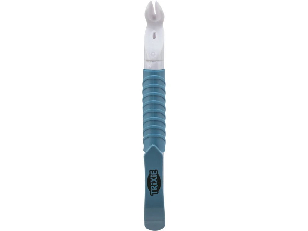 - pen with integrated LED light for easier detection and removal of ticks, especially in dark fur