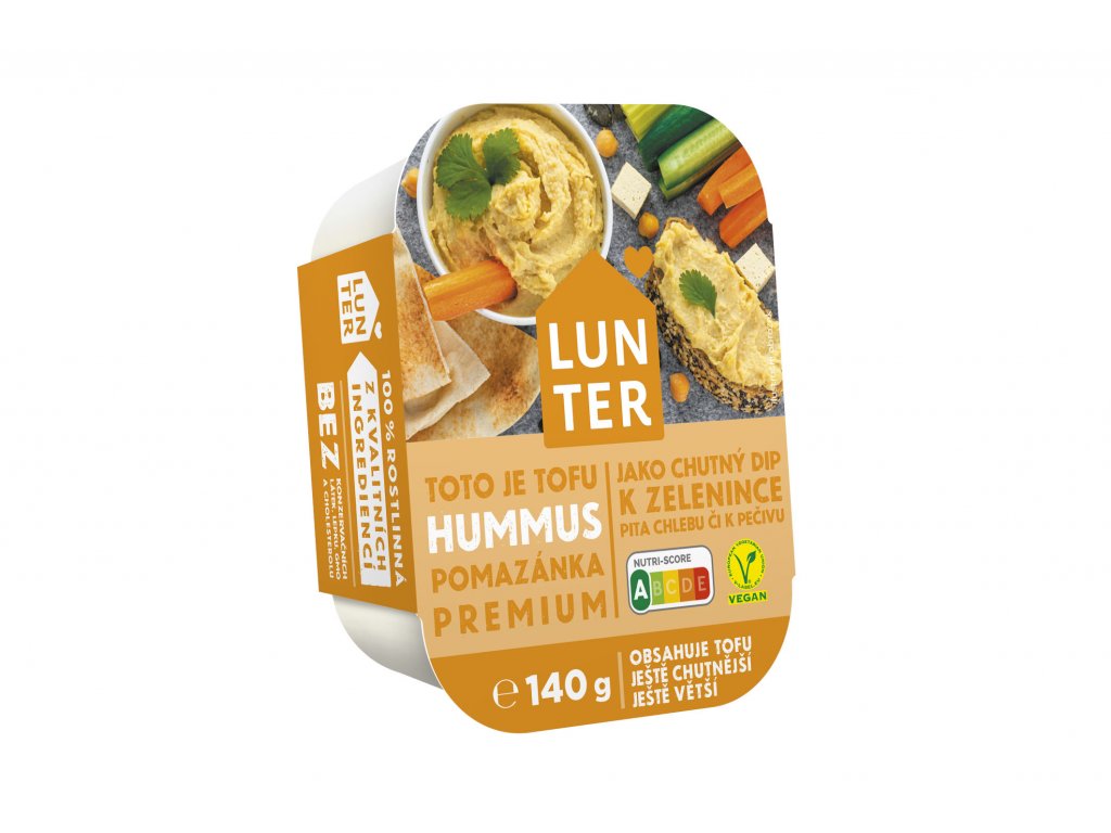 The new Hummus PREMIUM is an excellent novelty, thanks to the addition of LUNTER Tofu to the recipe. You can use it with vegetables as a tasty dip. It also goes well with pita bread or pastries. - 100% plant-based - Free of cholesterol and preservatives - The spread has a high content of full-fledged proteins - Made from pure European soy, without the use of genetically modified organisms (GMO)Nutritional values
