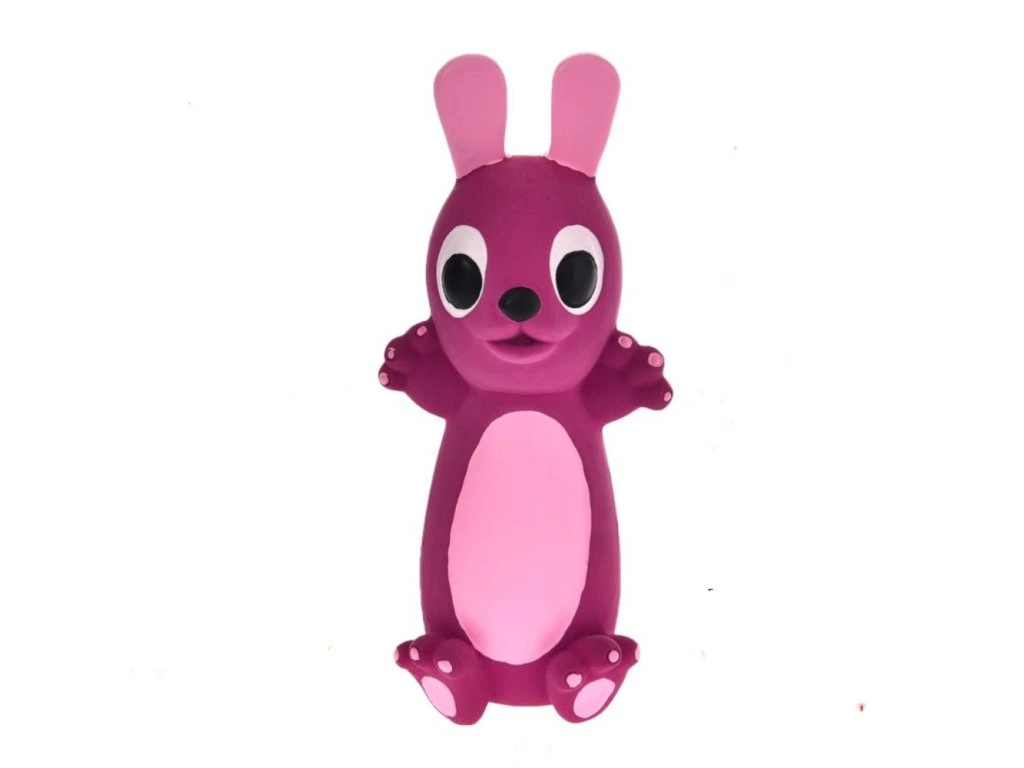 A popular latex toy for dogs in the shape of a rabbit.