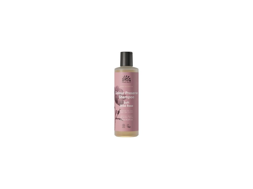 A nourishing shampoo for protecting colored hair. With a gentle formula with hydrating aloe vera, with sea kale that protects color and beetroot extract for hair nourishment. The shampoo leaves hair shiny and healthy with a light scent of wild rose.