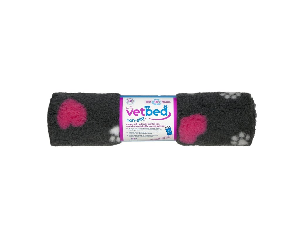 Vetbed anti-slip / Drybed graphite hearts and paws DELUXE 75 x 50 cm, pile 30 mm