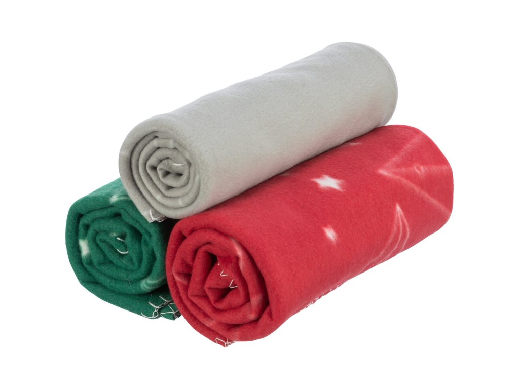 Xmas fleece blanket LUCIANO, mix of colors (red, sand, green)
