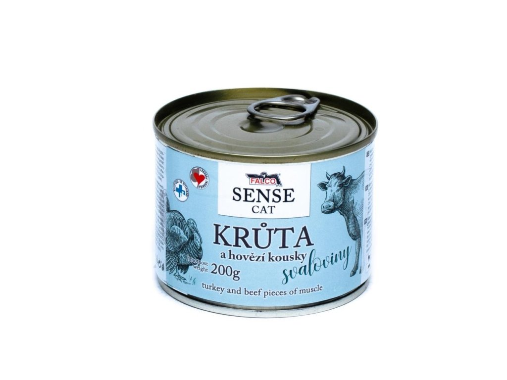 FALCO SENSE Cat krůta a hovězí kousky svaloviny, konzerva 200 g
