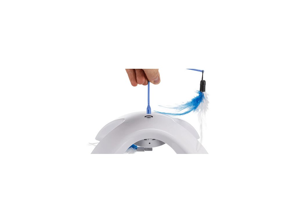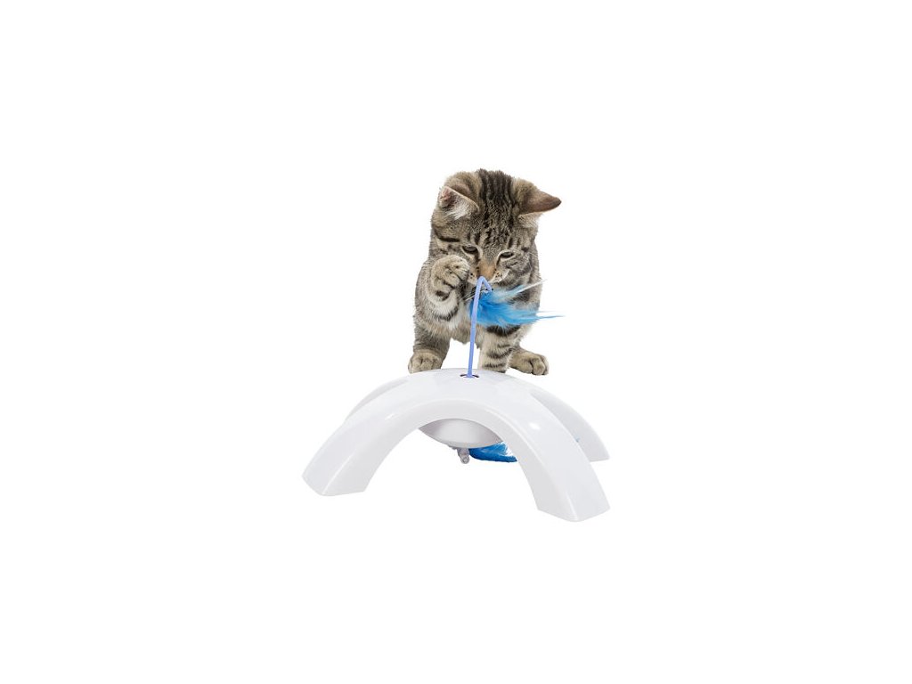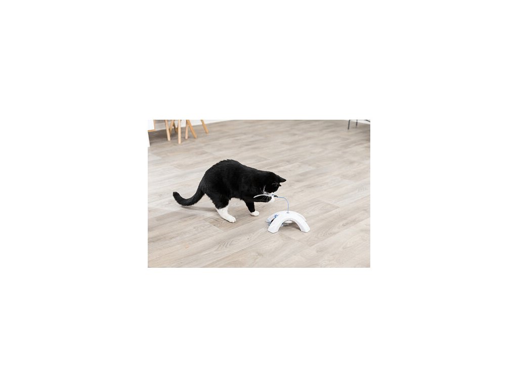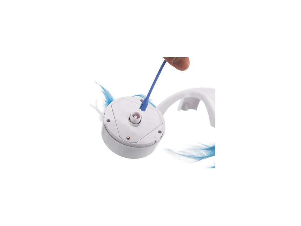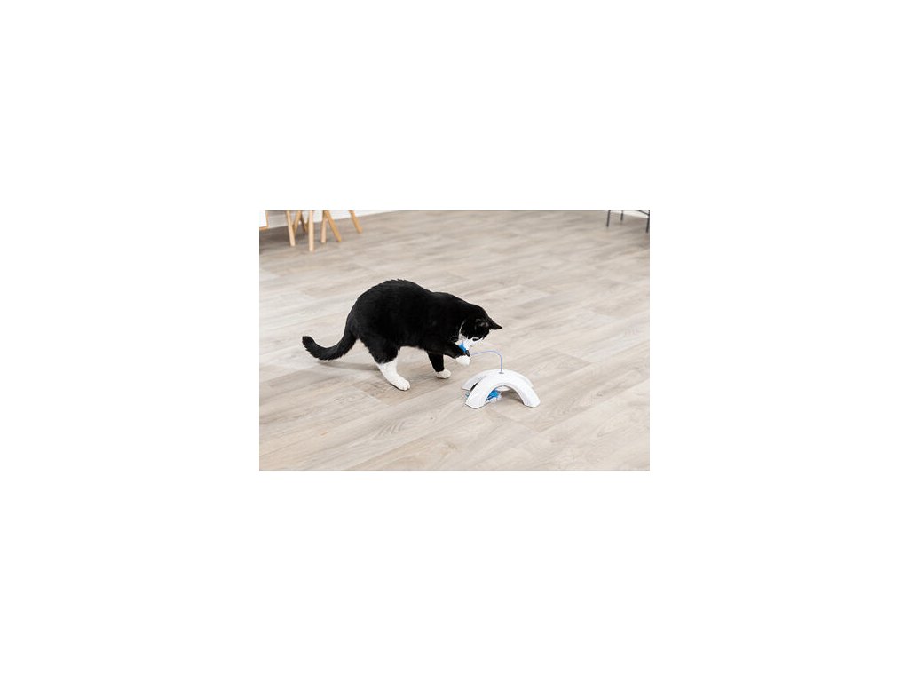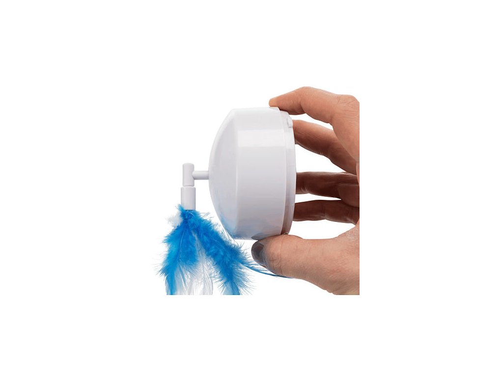 - motorek otáčí hračkou dokola a střapec provokuje kočku k lovu