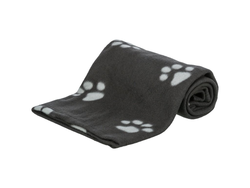 Flísová deka BEANY 100x70cm - černá s béžovými tlapkami