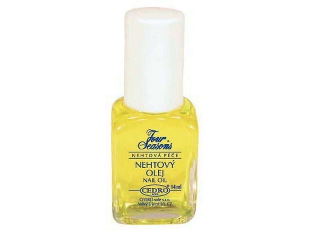 Další přípravek nehtového programu řady FOUR SEASONS® je Nehtový olej. Obsahuje pšeničný protein, který příznivě ovlivňuje růst nehtů, slunečnicový olej napomáhá odstranit vysušenost nehtů a nehtové kůžičky po aplikaci laků a odlakovačů. Obsažený olej z kukuřičných klíčků regeneruje a hojí slabé a třepící se nehty a zpevňuje je. Výtažek z rozmarýnu působí dezinfekčně a extrakt z růže morušové zjemňuje a hydratuje nehty a nehtovou kůžičku. Nanáší se na nehet a nehtovou kůžičku dle potřeby 1 x denně např. večer a lehce se vmasíruje Je vhodný také na ošetření kůžičky při modeláži nehtů. Složení:ISOPROPYL MYRISTATEPARAFFINUM LIQUIDUMTRITICUM VULGARE GERM OILZEA MAYS OILROSA MOSCHATA SEED OILHELIANTHUS ANNUUS SEED OILROSMARINUS OFFICINALIS LEAF EXTRACTASCORBYL PALMITATECI 47000