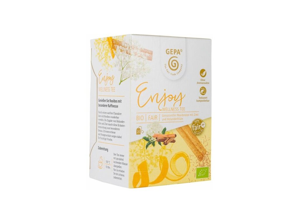 Složení: rooibos* 35 %, skořice* 22 %, jablko*, citronová verbena*, kořen lékořice*, pomerančová kůra* 7,5 %, bezový květ* 5 %