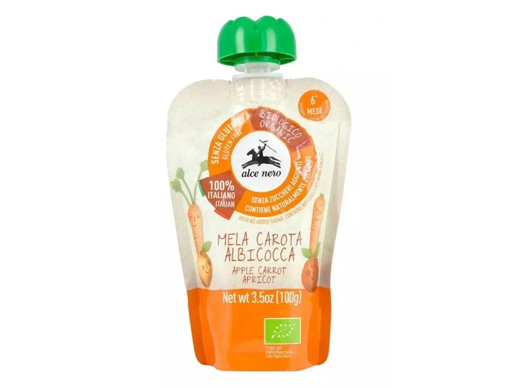 Alce Nero Puree alma, sárgabarack, sárgarépa 6m+ 100 g bio