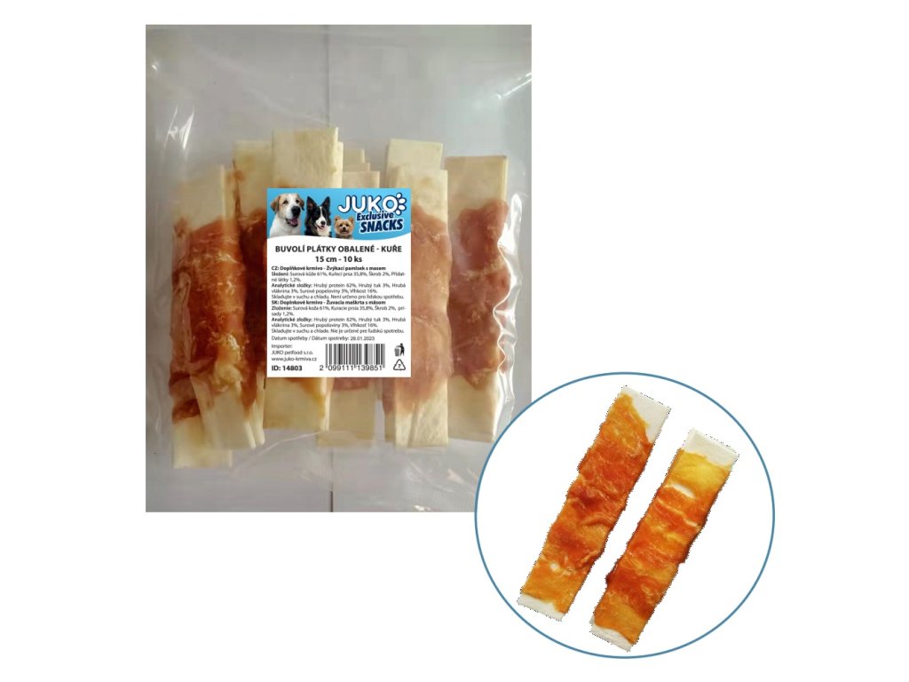Bivalyszeletek csirkehúsba csomagolva JUKO Snacks 15 cm (10 db)