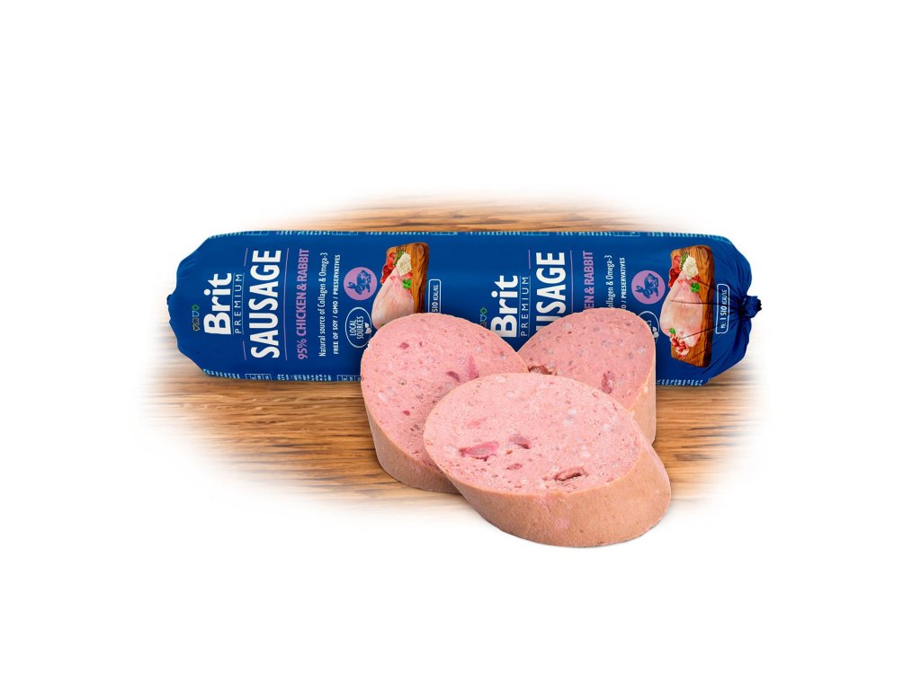 A Brit Premium Sausage teljes értékű kutyaeledel, vagy ideális kiegészítője a tészta, a BARF diétának és a főtt húsnak. Alkalmas érzékeny emésztésű és idősebb kutyák számára.