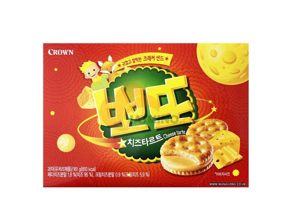 - Összetevők: BÚZALiszt, zsír, SAJTpor, kukoricaolaj, cukor, teljes TEJpor, fruktóz, emulgeálószer (E222), karamellpor, malátapor, szőlőcukor, só, édes tejsavópor, mesterséges aroma (VAJ), vitaminok, enzim. Tápérték 120g-ban: Energia 2092kJ/500kcal / Zsír 22g - ebből telített 14g / Szénhidrát 66g - Cukor 22g / Fehérje 9g / Só 0.522g. Tárolás: Száraz és sötét helyen tárolandó. Származási ország: Korea.Kiegészítő paraméterek