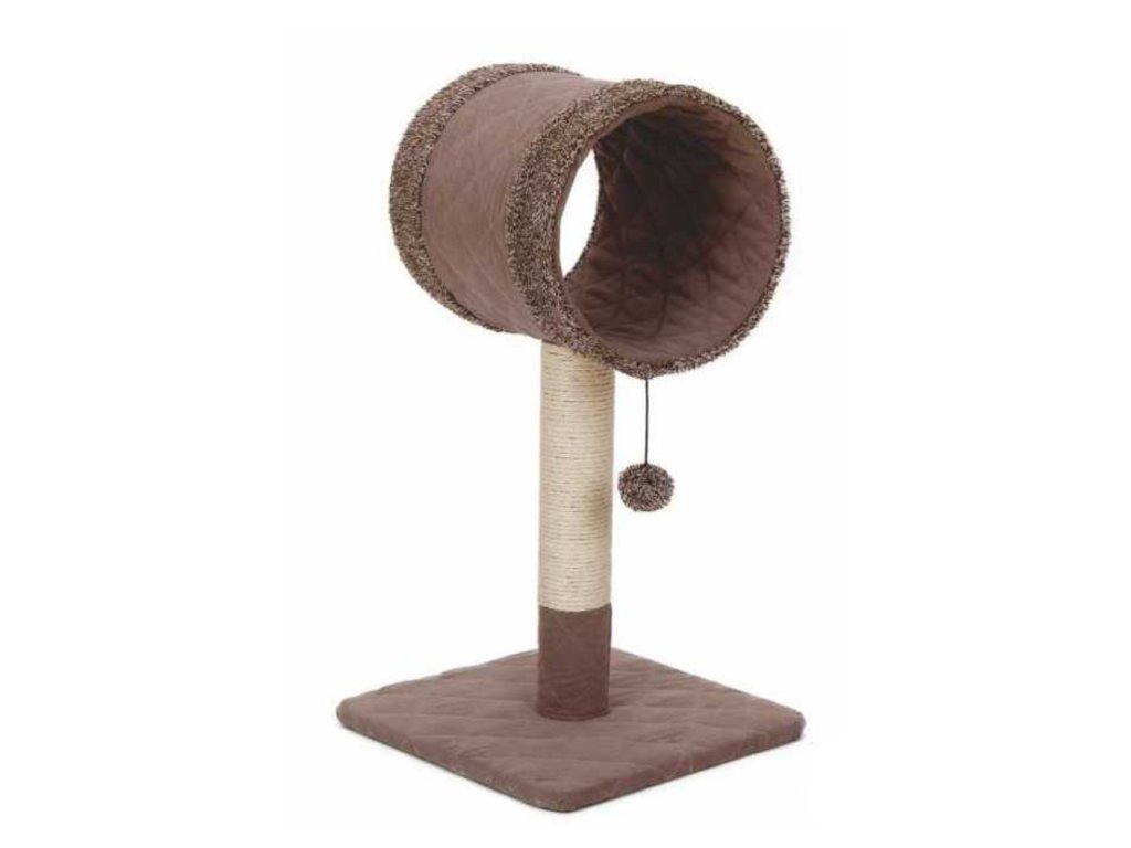 A karcolóoszlopnak van egy búvóhelye és egy pihenőhelye. Lehetőséget nyújt a karmok élesítésére, pihenésre és lazításra. Készült plüss és szizál. Egy akasztós játékkal kiegészítve, amely játékra csábít.