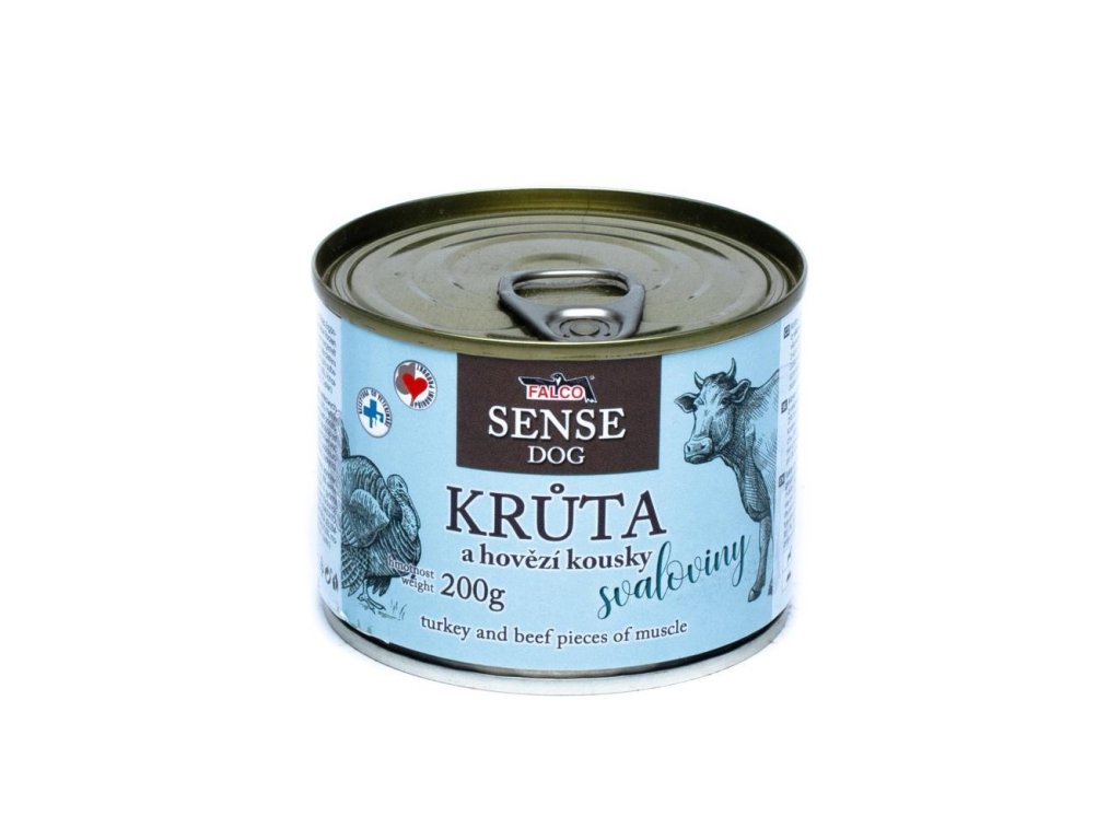 FALCO SENSE Kutya pulyka és marha izomdarabok, konzerv 200 g