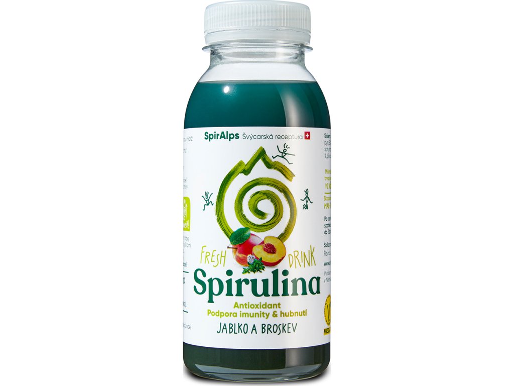 Friss gyümölcsital spirulinával, almával és őszibarackkal, 250 ml SPIRALPS