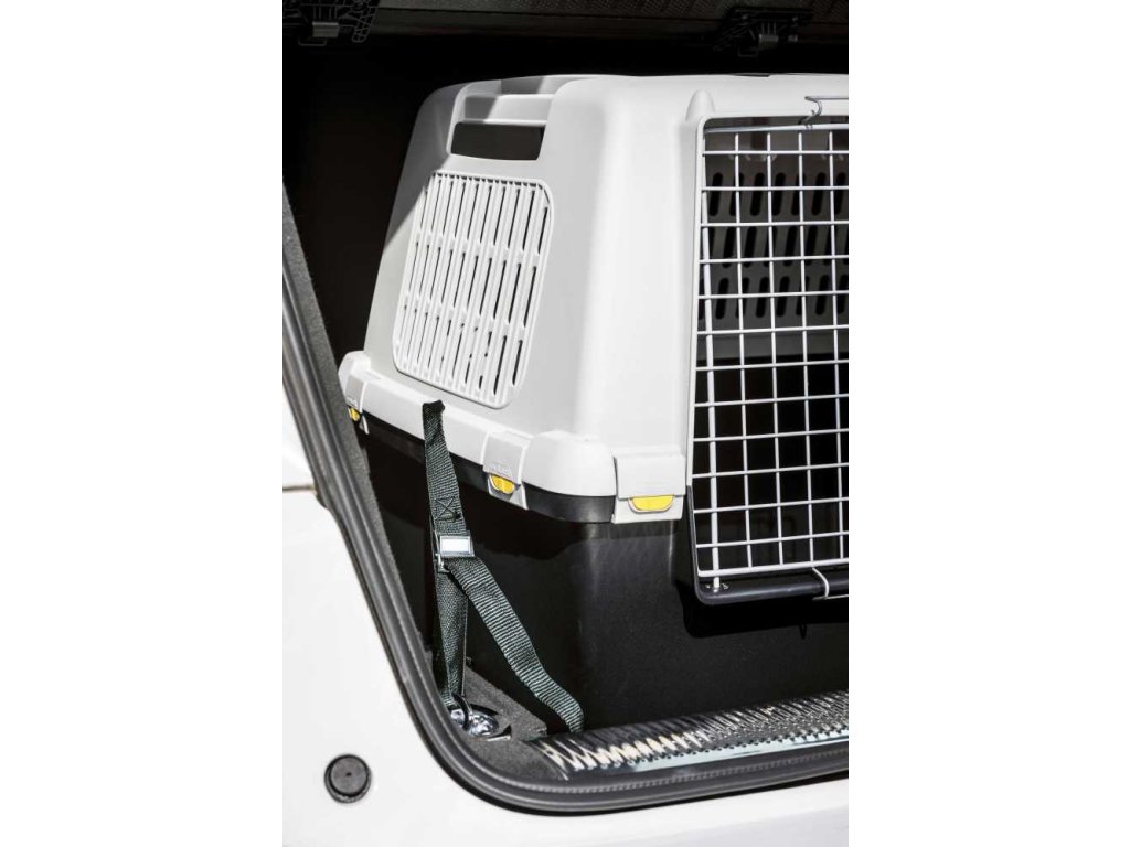 Az autó csomagtartójának biztonsági övei a Gulliver Touring ládához.