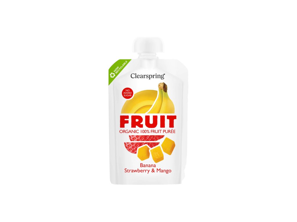 Gyümölcspüré Banán & Eper & Mangó BIO - VEGÁN - Clearspring 100g