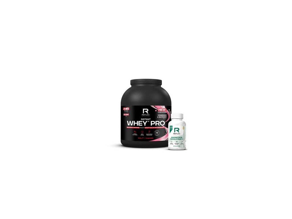 Instant Whey PRO 2,2kg jahoda malina + Magnesium 90 kapslí ZDARMA