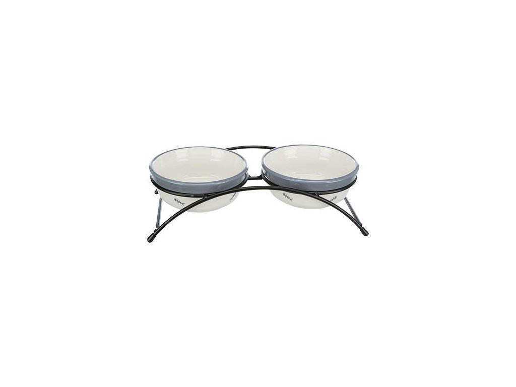 Kerámia tálak készlet állvánnyal 2 × 0,3 l / ø 12 cm fehér/kékszürke