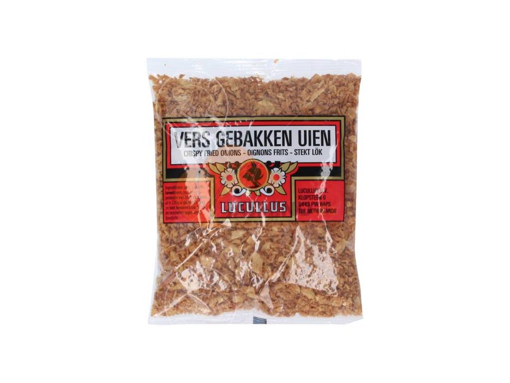 Hozzávalók: hagyma, pálmaolaj, búzaliszt, só. Tápérték 100g-ban: Energia 2450kJ / 590kcal / Zsír 44g ebből telített zsírsavak 21g / Szénhidrátok 40g - ebből cukor 9g / Fehérje 6g / Só 1.2g. Tárolás: Száraz helyen, napfénytől védve tárolandó. Származási ország: Hollandia.Kiegészítő paraméterek