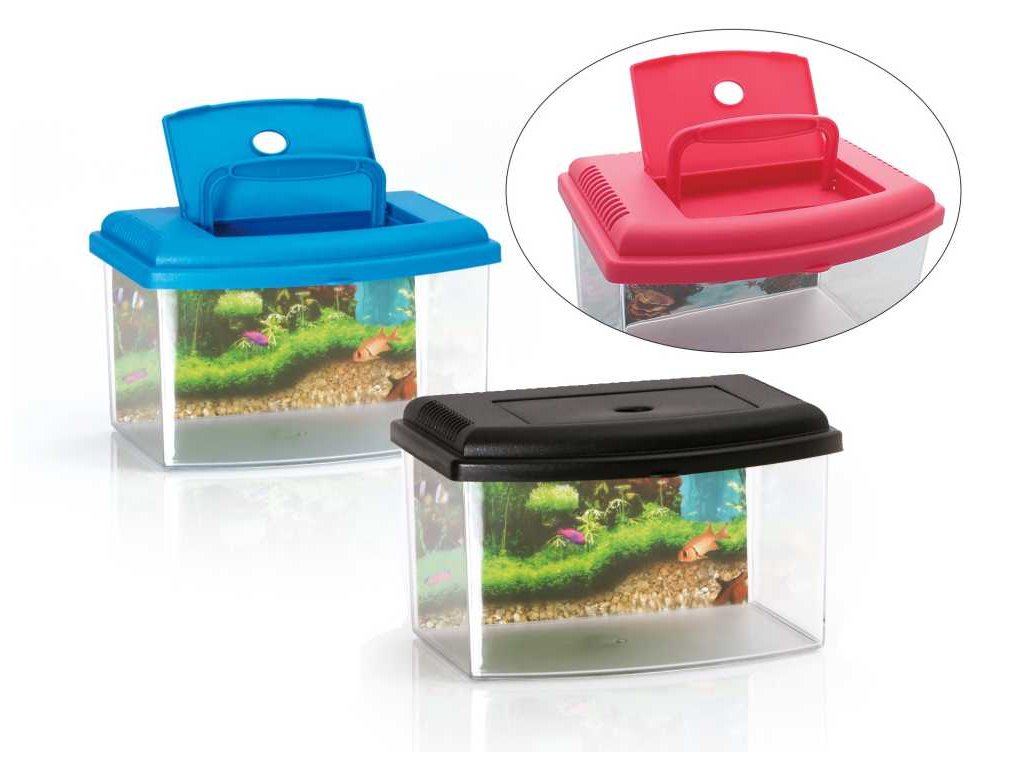 Akváriumműanyag akvárium fedéllel és fogantyúval.