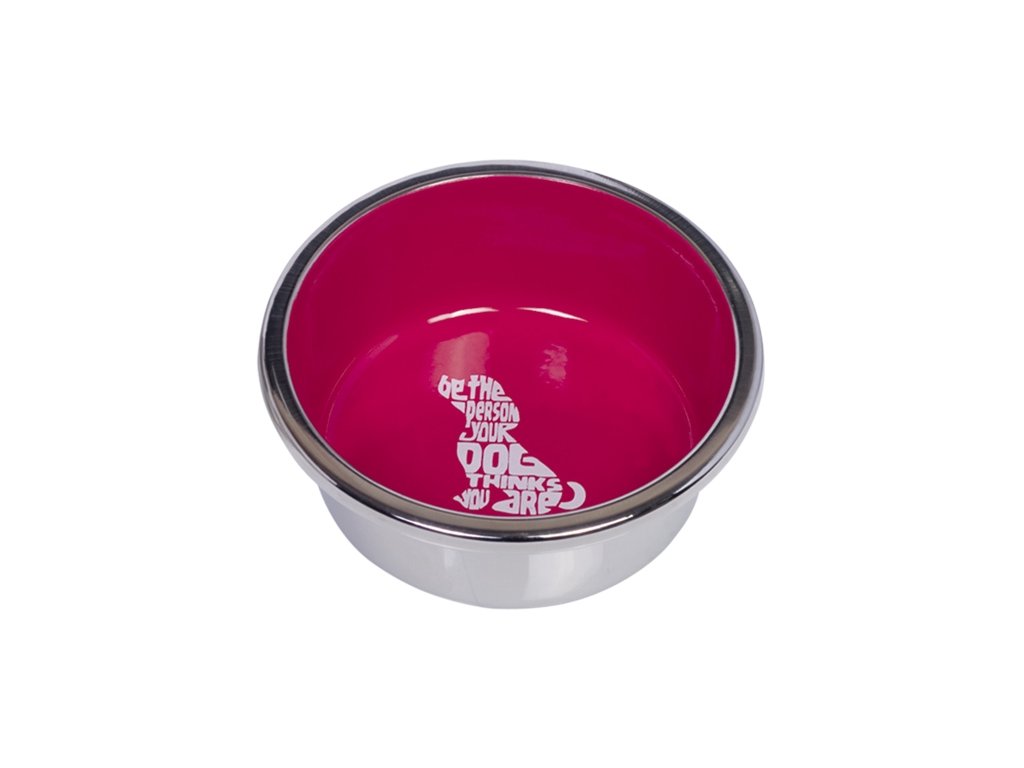 Rozsdamentes acél tál színes belsővel. A tál megerősített aljú, így nagyobb a súlya. Az alján lévő gumi bevonat megakadályozza, hogy a tál elmozduljon a padlón. A méret kistestű kutyafajták számára megfelelő. Tálka térfogata: 470 ml. A tál teljes mérete: ø 13 cm. FIGYELMEZTETÉS: A tál nem mosogatógépben mosható. Moss kézzel!Kiegészítő paraméterek