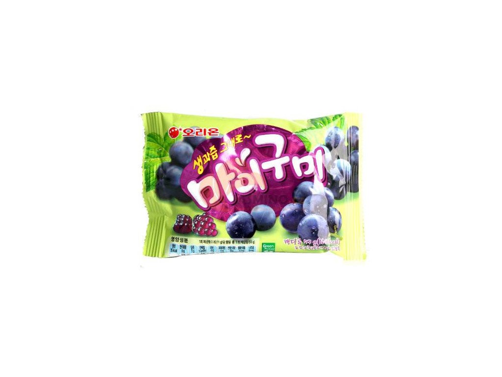 - Összetevők: glükózszirup, zselatin, szőlőkoncentrátum, savanyúságot szabályozó anyag E330, aroma, zselésítőanyag E440, színezék E163, olívaolaj, sav E296. Tápérték 100 grammonként: energia 445 kcal / zsír 0,1 g telített 0,1 g / szénhidrát 78 g cukor 56 g / fehérje 2,2 g / só 0 g. Tárolás: Száraz és sötét helyen tárolandó. Származási ország: KoreaKiegészítő paraméterek