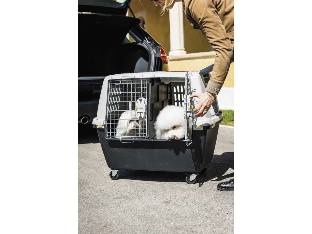 Ezután a láda alkalmas két kutya egyidejű szállítására, mindegyiknek megvan a maga helye, így biztonságosan utazhat.