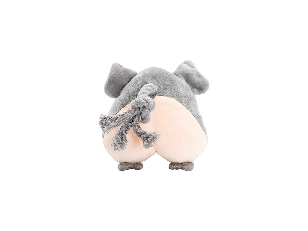 Plüss 2D elefánt hanggal, pamut kötéllel, 16 cm, szürke, HipHop