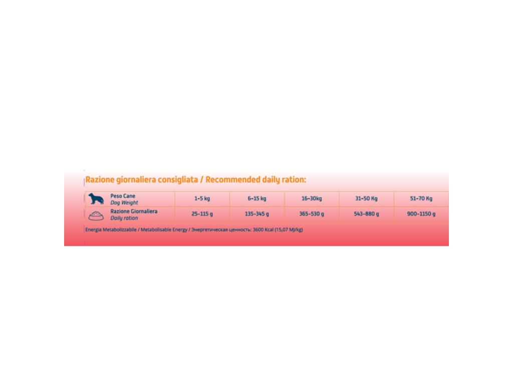 Etetési utasítások: Szárazan vagy vízzel vagy húslével megnedvesítve etethető. Más élelmiszerről való átálláskor az adag fokozatos emelése javasolt. A kutyának mindig rendelkeznie kell egy tál friss vízzel.