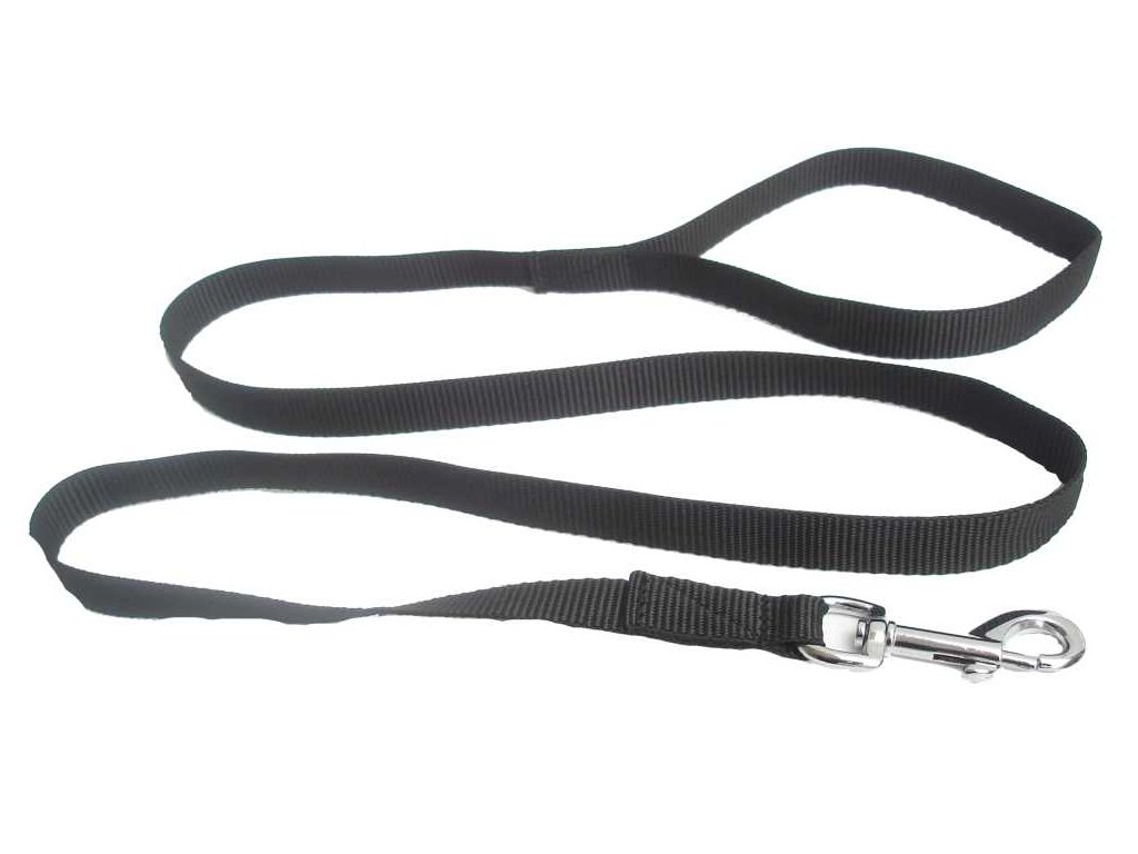 Fekete hevederes póráz karabineres zárással és szemmel a könnyű tartás érdekében.