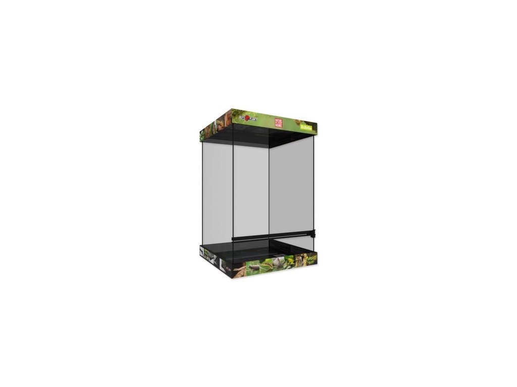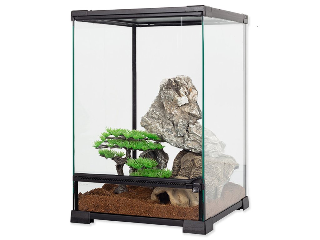 A terráriumok felső és alsó műanyag kerettel vannak felszerelve, amely lehetővé teszi a terráriumok egymásra helyezését és a fűtőlapok elhelyezését közvetlenül az alsó üveg külső oldalán.