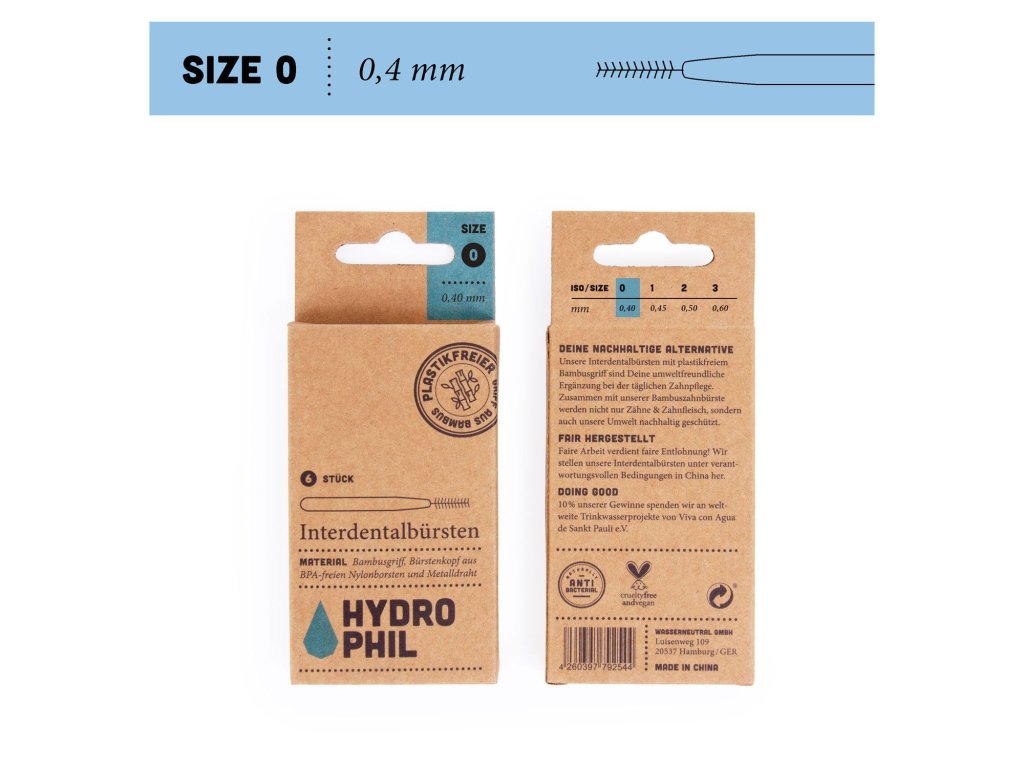 Minimalistické mezizubní kartáčky Hydrophil pro denní použití vám dají opravdový důvod k úsměvu. Jednoduše vyčistí i nejnedostupnější zubní mezírky, a pomohou tak zlepšit celkové zdraví ústní dutiny. Antibakteriální rukojeť je vyrobená ze 100% rozložitelného a udržitelně vypěstovaného bambusu, štětinky pak z jemňoučkého nylonu. Kromě čistých zubů vás zanechají také s hřejivým pocitem na duši. Jejich koupí totiž podpoříte projekt, který zajišťuje pitnou vodu potřebným po celém světě. Domů vám kartáčky dorazí v ekologické a recyklované papírové krabičce.Doplňkové parametry