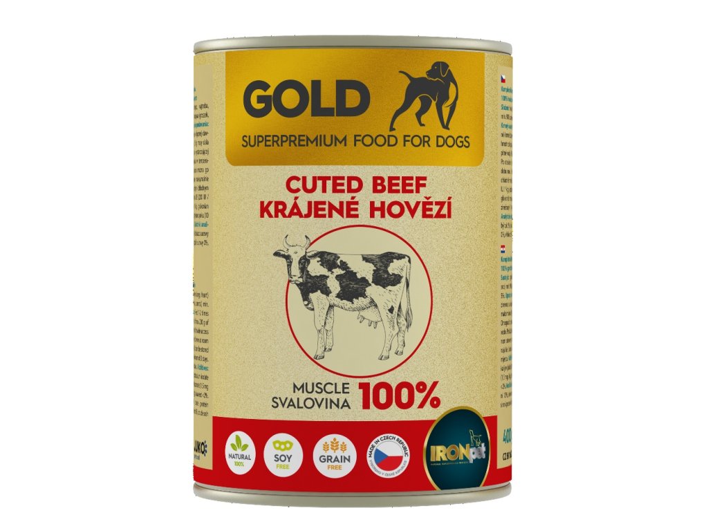 IRONpet Gold Dog Hovězí krájená svalovina, konzerva 400 g