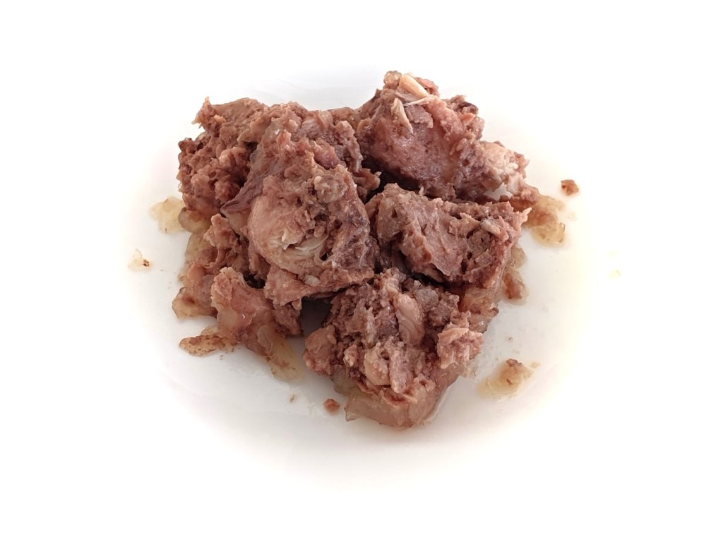 Složení: kuře 85 %, hovězí 13 % (srdce, plíce, maso, vemeno, bachor), vepřové 2 % (játra, srdce, plíce).