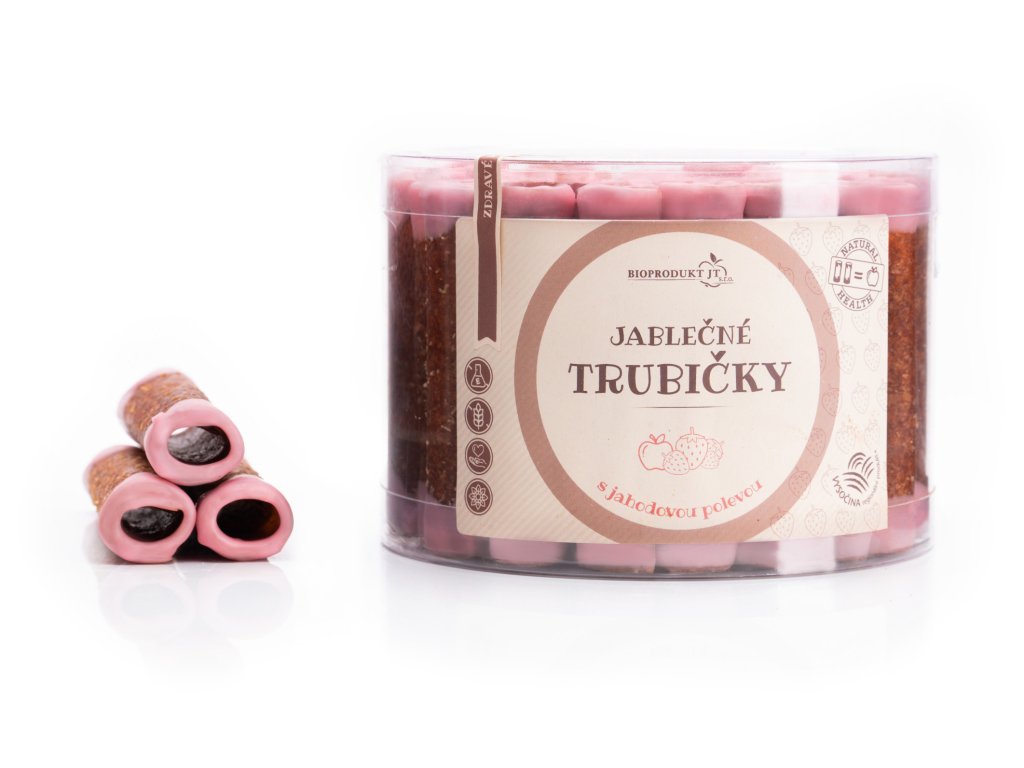 Jablečné trubičky s JAHODOVOU polevou dóza - Trutna 540g