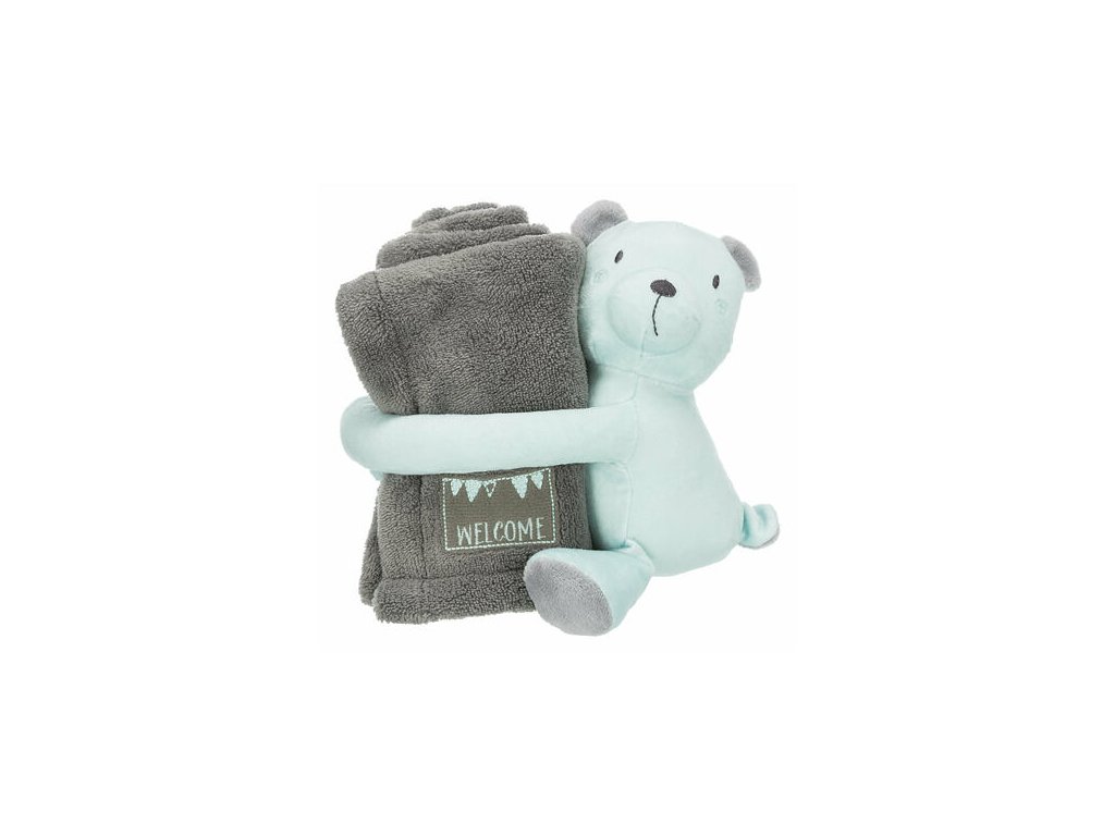 JUNIOR set - deka 75 x 50 cm + plyšový medvídek, šedá/mátová