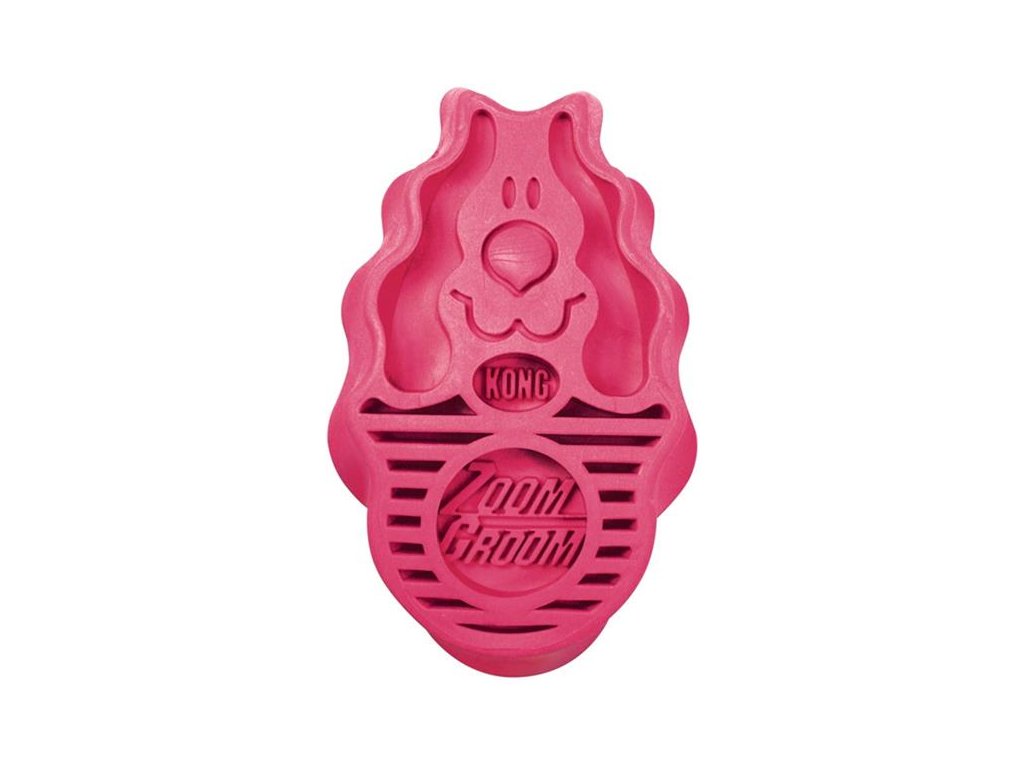 Patentovaný gumový hřeben ZoomGroom je vedle legendárního „gumového sněhuláka“ jednou z největších stálic v sortimentu KONG. Díky svým dvoucentimetrovým gumovým zubům kuželovitého tvaru pronikne i dlouhou a hustou srstí, a může tak nejen účinně vyčesávat línající chlupy, ale také šetrně masírovat pokožku a tím podporovat její prokrvení a přirozenou tvorbu kožního mazu. Funguje stejně dobře nasucho jako zamokra a při koupání usnadňuje aplikaci i vymývání šamponu. Rukojeť má ergonomicky tvarované okraje pro pevnější úchop.