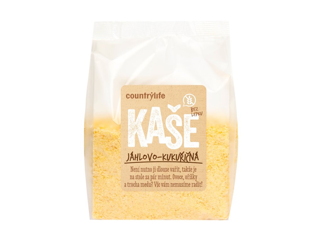Kaše COUNTRY LIFE z jáhel a kukuřice je přirozeně bezlepková, výživná a rychlá na přípravu. Díky své jemné chuti je ideální pro celou rodinu. Můžete ji ochutit čerstvým ovocem, ořechy, medem, kakaem nebo rostlinnými mléky. Hodí se také do zdravých koláčů, krémů a moderních fitness dezertů.