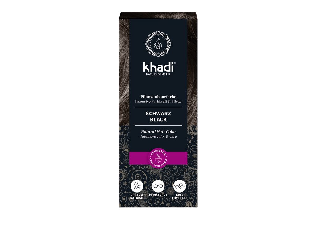 Dodává vlasům sytý, přirozeně působící černý odstín s dlouhou výdrží. Výsledná barva se přizpůsobuje výchozímu tónu vlasů a době působení – od jemné přirozené černé až po hlubokou havraní. Zároveň zajišťuje výborné krytí i šedin, intenzivní lesk a viditelný objem. U velmi světlých nebo šedých vlasů se doporučuje dvoufázové barvení s předpigmentací odstínem Khadi Color Prep pro co nejrovnoměrnější výsledek. Bez syntetických látek, s certifikací kontrolované přírodní kosmetiky, vegan. Snadná aplikace, nádherný efekt. Ideální volbou pro všechny, kdo chtějí spojit zážitek jedinečné, permanentně intenzivní barvy s přírodní péčí bez škodlivých chemikálií.