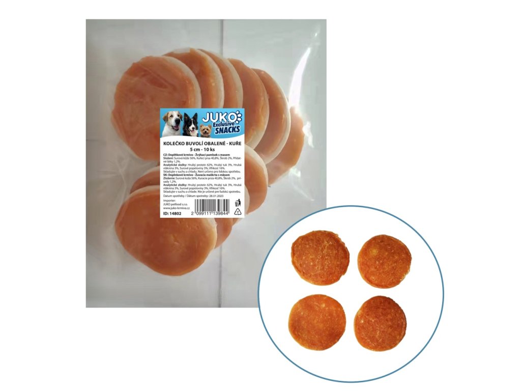 Kolečko buvolí obalené kuřecím masem JUKO Snacks 5 cm (10 ks)