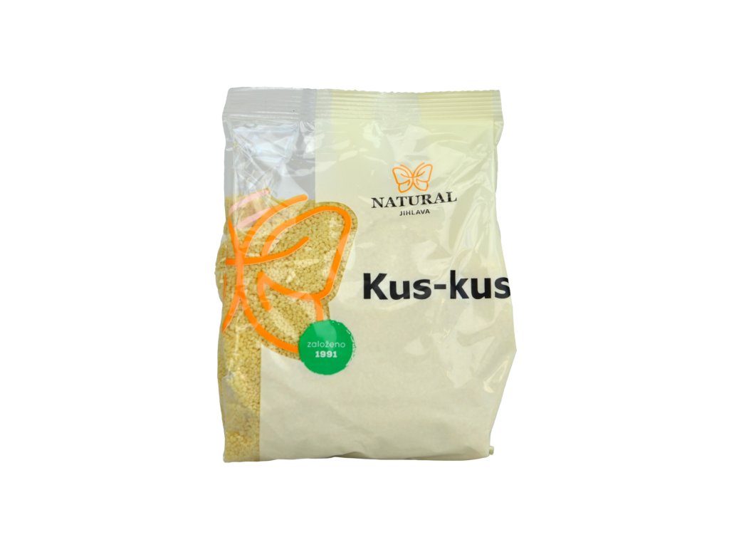 Složení: Tepelně zpracovaná semolinová KRUPICE kus - kus je jednou ze základních potravin severoafrické kuchyně. Jedná se o spařenou a do kuliček tvarovanou krupici z pšenice, ječmene nebo prosa. Kuskus se při přípravě nevaří, ale zalévá vroucí vodou nebo vařícím pokrmem. Kuskus je hlavní složkou nebo přílohou mnoha jídel z rozličné zeleniny jako například z rajčat, mrkve, dýně, cukety, zelí a většinou i masa, ať už drůbežího, hovězího, jehněčího, nebo také ryby. Typickým kořením na kuskus je ras el-Hanout a pro ostřejší chuť se používá harissa. Studený se kuskus podává hlavně jako salát s mořskými plody nebo se používá pro přípravu taboulé. Hodí se také k přípravě sladkých jídel, například s mlékem, rozinkami nebo mandlemi.Nutriční hodnoty