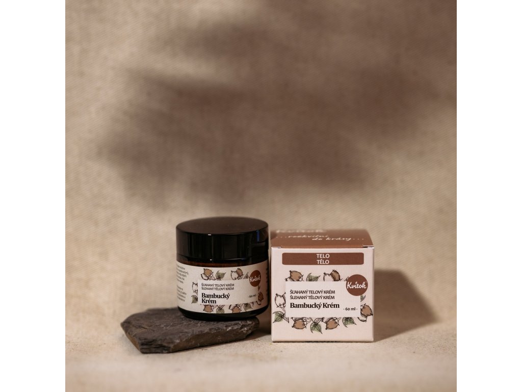 Taky milujete bambucké máslo a jeho blahodárné účinky? A co ho vyzkoušet třeba v nerafinované podobě v kombinaci s mandlovým a BIO avokádovým olejem a navíc báječně nadýchané? Láká vás to? Pak rozhodně vyzkoušejte tento tělový krém, který pro vás v Kvitku s láskou našlehali.. Díky vysokému podílu bambuckého másla a olejů je více než vhodný pro velmi suchou, extrémně citlivou a namáhanou pokožku. Rozmazlovat se s ním ale mohou všichni bez ohledu na typ pleti.Doplňkové parametry