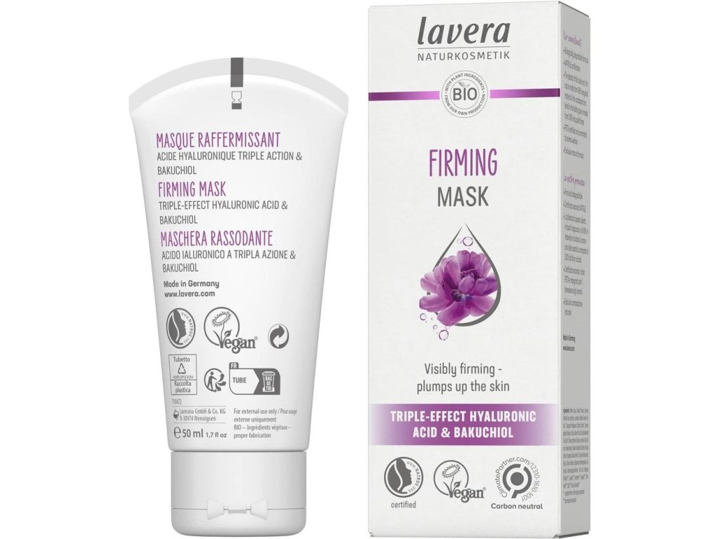 Lavera Zpevňující maska dodá vaší pleti extra dávku výživy. Trojí efekt Kyseliny hyaluronové proniká všemi vrstvami pokožky a napomáhá zjemnit hluboké vrásky. Společně s Bakuchiolem dodává pleti potřebnou hydrataci a výživu. Výsledkem je viditelné zpevnění pleti a projasnění. Bakuchiol působí podobně jako retinol, avšak je více účinnější. Pomáhá v pleti vytvářet kolagen, který přispívá k pružnosti a obnově kožních buněk. Dopřejte si Zpevňující masku lavera alespoň 1x týdně a těšte se z viditelně zpevněné a vyživené pleti.